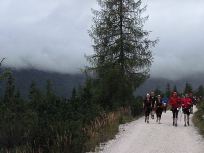 Die Wanderer und Stöckchenschwinger müssen natürlich warten, bis die Läufer auf der Piste sind. Alle Klassen zusammen gezählt starten heute über 1200 Teilnehmer. Wie viele Läufer darunter sind weiß ich nicht, aber am Schluss kommen trotz widriger Umstände 250 Läufer am Ziel in Pertisau an.