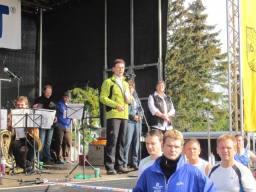 Der StartLaut Wetterbericht soll es heute nicht regnen. Dennoch regnet es, als wir aufstehen. Petrus, so war das aber nicht ausgemacht! Wenn Petrus mich nicht erhört, versuch ich es halt mal mit ein paar heidnischen Sonnenhex-Sprüchen. Vielleicht hilft ja das! In der Tat, als wir das Startgelände in Neuhaus erreichen, hat sich der Regen verzogen und so kommt gleich gute Laufstimmung auf. Sie wandelt sich in Gänsehautgefühl als am Startplatz traditionell der Schneewalzer aufgespielt wird und dazu fast 3000 Läuferinnen und Läufer mit erhobenen Armen schunkeln. So was gibt es nur am Rennsteig! Nach einem Countdown von 10 abwärts schickt uns der