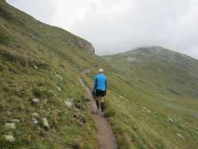 Erlebnisse im hochalpinen Gelände - Zu den BildernIch lasse die 40 er Marke nach nun schon fast 6 Stunden Laufzeit hinter mir. Die Hälfte der Strecke dürfte ich geschafft haben, aber der anspruchsvollste Teil der Strecke liegt noch vor mir. Also Thomas, gib etwas Gas! DidiIch hole nun den fast blinden Didi ein, der mit Guide läuft. Es ist heute Didis 100. Ultra. Wir lamentieren etwas über die nun schon knappe Zeit und die falsch aufgestellte 40 Kilometermarke, die diesen "K79" wohl zu einen "K82" oder sonst was machen wird. Auch weiß ich jetzt schon anhand des Zwischenergebnisses meines barometrischen Höhenmessers, dass wir mit deutlich mehr als den offiziell angegebenen 2370 Höhenmetern rechnen müssen. :-) Aber als alte Laufhasen werden wir auch das schon schaffen! Anstieg in hochalpine RegionenBei Kilometer 49, bereits hinter Chants, geht der