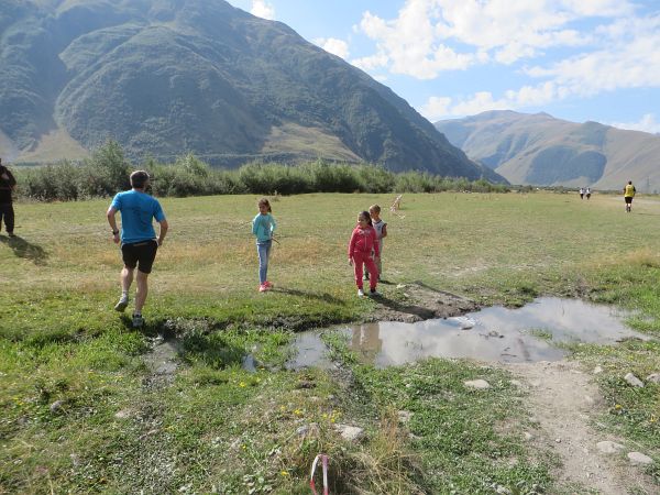 In Achkhoti überquerten wir den reißenden Fluss und die Heerstraße, um bei km 15