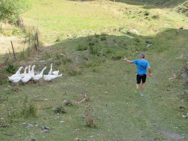 Die führenden Läufer kamen uns entgegen und in einer kleinen Ortschaft suhlten