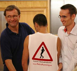 Teilnehmern. Rekordversuch Marathon rückwärts